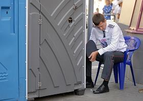 Жанровая фотография. Участник соревнований по бегу среди сотрудников правоохранительных органов Москвы одтыхает после забега на праздновании Дня города.