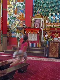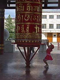 Жанровая фотография. Женщина молится у главного буддийского храма республики в Элисте.