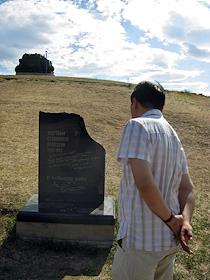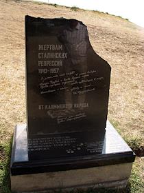 Памятник жертвам сталинского геноцида. Камень - известняк доставлен с места захоронения фронтовиков Калмыкии, умерших при сооружении Широковской ГЭС в 1944 - 1945 годах".