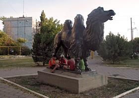 Памятник работы скульптора Степана Ботиева "Верблюд - хозяин степи" в Элисте.