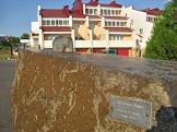 Памятник жертвам сталинских репрессий. Камень - известняк доставлен с места захоронения фронтовиков Калмыкии, умерших при сооружении Широковской ГЭС в 1944 - 1945 годах".
