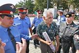 Исполнительный директор движения "За права человека" Лев Пономарев (справа) во время пикета, посвященного 10-летию взрывов домов в Буйнакске, Москве, Волгодонске, организованного правозащитниками. Пикет прошел в Новопушкинском сквере.