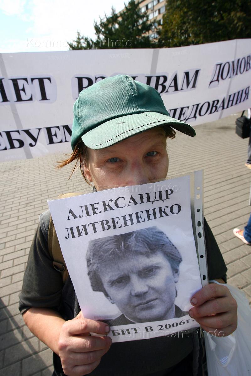 Пикет, посвященный 10-летию взрывов домов в Буйнакске, Москве, Волгодонске, организованный правозащитниками. Пикет прошел в Новопушкинском сквере.