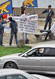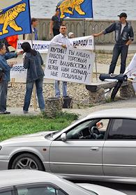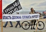 Участники акции в защиту законных прав и интересов автовладельцев, организованная Федерацией автовладельцев России. Акция прошла на территории Спортивной гавани. Плакат "Власть должна служить народу!".