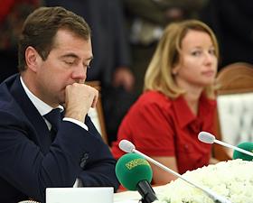 Президент России Дмитрий Медведев (слева) на торжественных мероприятиях завершающего этапа ралли "Шёлковый путь-2009".