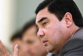 Президент Туркменистана Гурбангулы Бердымухамедов во время официальной встречи с президентом России Дмитрием Медведевым. Встреча прошла в резиденции туркменского президента на берегу Каспийского моря.