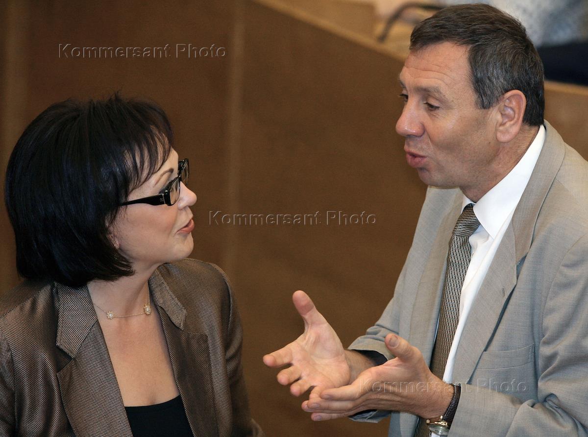 Первый заместитель председателя правительства России Игорь Шувалов (слева) и член комитета Государственной думы России по охране здоровья Татьяна Яковлева (справа) на заседании Государственной думы России.