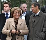 Слева направо: заместитель председателя Совета Федерации России Светлана Орлова, губернатор Кемеровской области Амангельды Тулеев, губернатор Санкт-Петербурга Валентина Матвиенко и заместитель председателя правительства России Александр Жуков на торжественной церемонии освящения нового колокола Звонницы Софийского собора.
