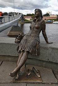 Виды Великого Новгорода. Памятник туристке - новгородочке, расположенный на сходе с пешеходного моста на Торговой стороне, недалеко от Ярославова Дворища.