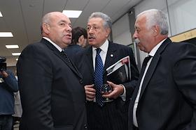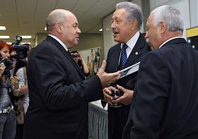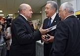 Слева направо: специальный представитель президента по международному культурному сотрудничеству Михаил Швыдкой, телеведущий, искусствовед Святослав Бэлза и телеведущий Леонид Якубович на церемонии вручения Национальной телевизионной премии "ТЭФИ -2009" в номинациях "Профессии". Церемония прошла в Центральном доме предпринимателя.