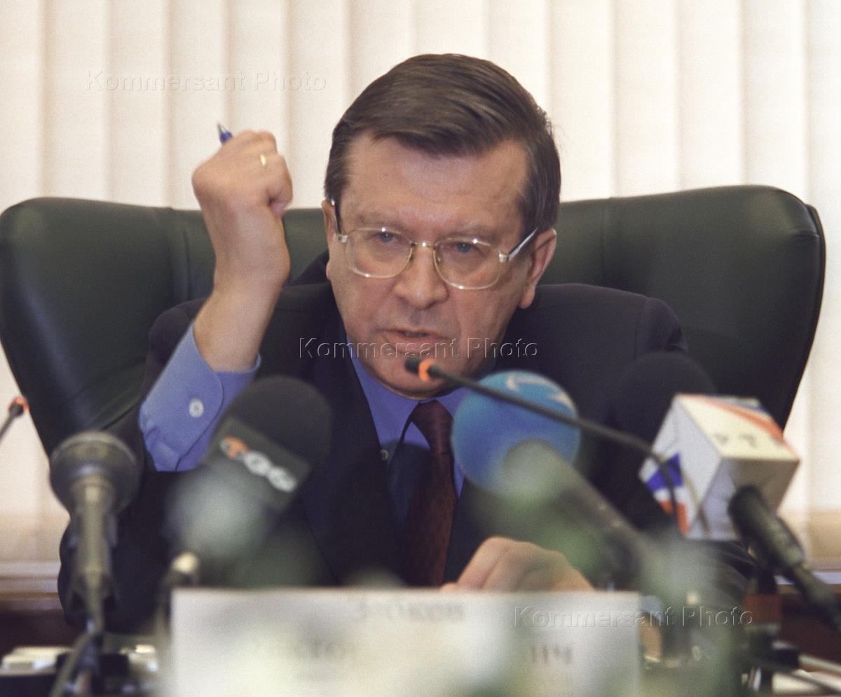 Первый заместитель министра финансов, исполняющий обязанности председателя Комитета РФ по финансовому мониторингу Виктор Зубков во время пресс-конференции на тему: "Итоги работы XIII сессии FATF и участие в ней российской делегации". Пресс-конференция состоялась в министерстве финансов России.