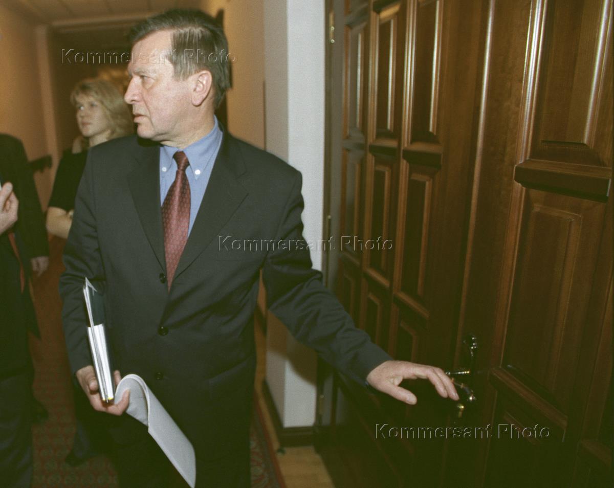 Russia's Deputy Finance Minister, Acting Head of the Finance Monitoring Committee Victor Zubkov is interviewed at the news conference headlined 'FATF XIII Session Results and Russian Delegation In-put'. The news conference was held in the Finance Ministry headquarters.