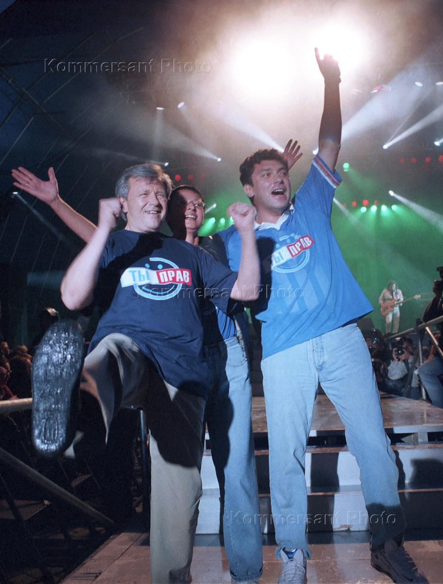 Union of Right Forces leaders (left to right): Samara region governor Konstantin Titov, Irina Khakamada and Boris Nemtsov.