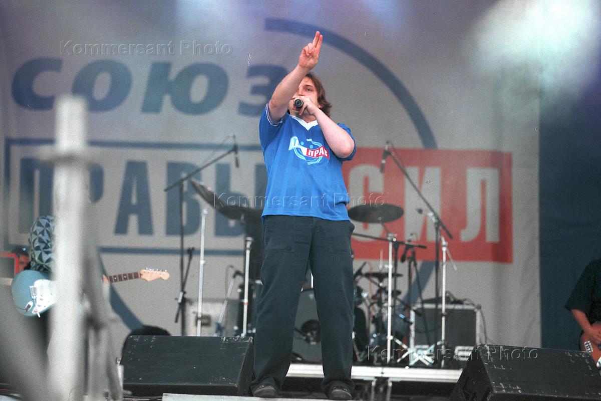 На концерте в поддержку "Союза Правых Сил" на Васильевском спуске к Москва-реке.