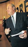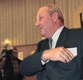 Губернатор Свердловской области Эдуард Россель на пресс-конференции в пресс-центре газеты "Известия".