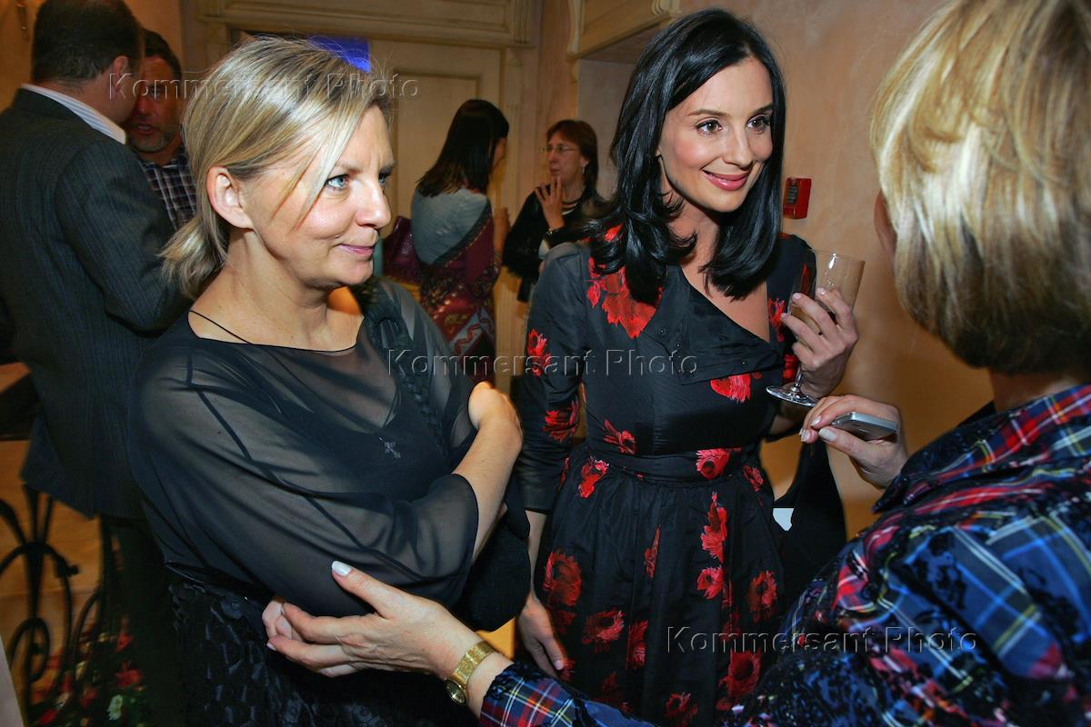 Модельер Виктория Андриянова (слева) и телеведущая Екатерина Стриженова (справа) во время церемонии открытия ресторана "Круаж".