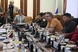 Председатель Совета Федерации (СФ) России Сергей Миронов (слева) во время встречи с известными российскими блогерами. Встреча прошла в здании СФ России.