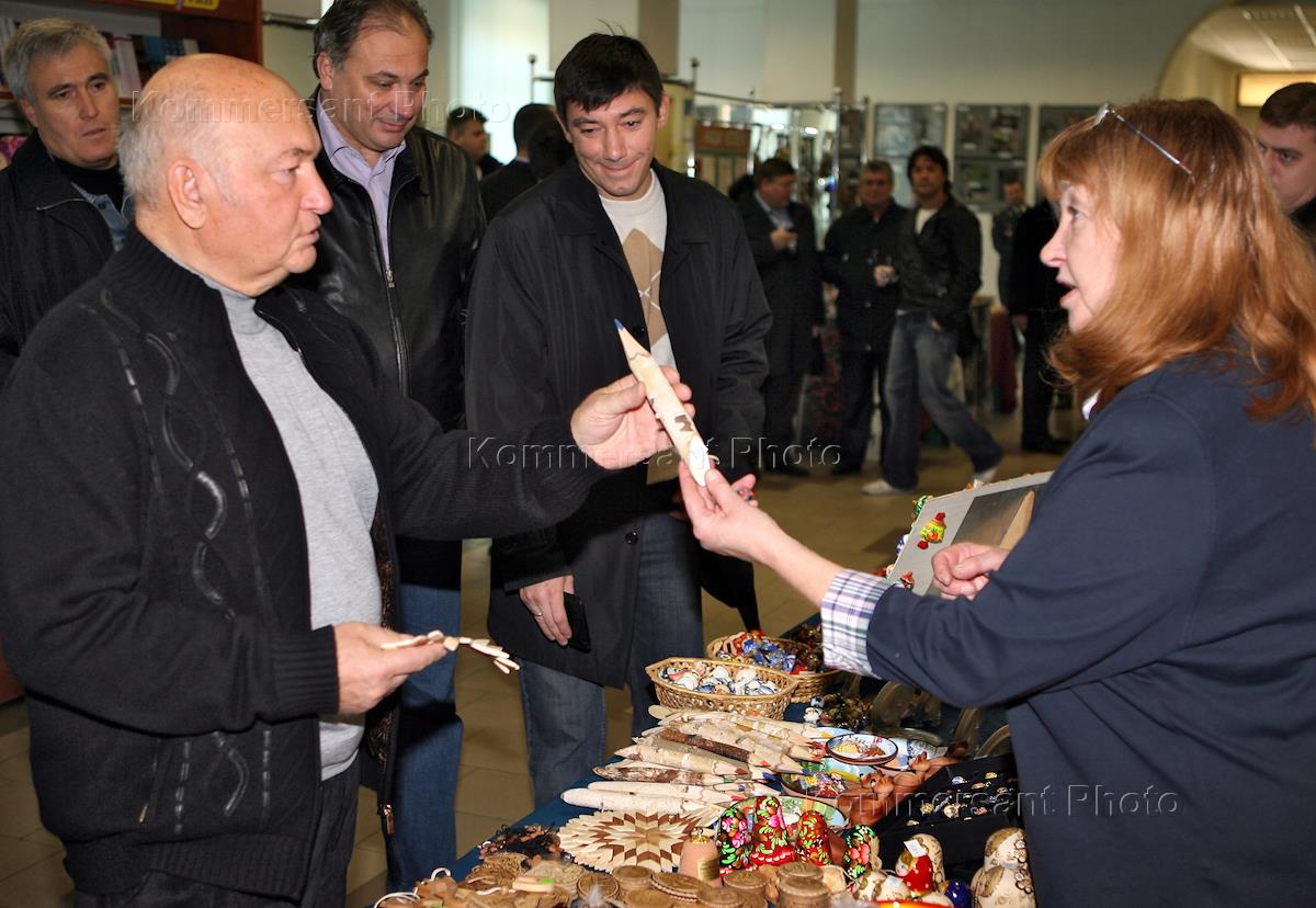 Мэр Москвы Юрий Лужков на избирательном участке № 157 в Доме детского творчества на Миусах после голосования на выборах депутатов в Московскую городскую думу.