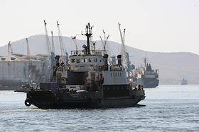 Жанровая фотография. Торговый порт Владивостока. Корабль на рейде.