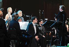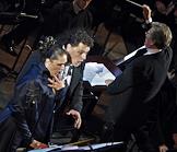 Слева направо: певцы Норма Фантини, Александр Антоненко и дирижер Владимир Федосеев во время исполнения музыкально-поэтической композиции "Легенды о любви" с Большим симфоническим оркестром имени П.И.Чайковского. Выступление прошло в Большом зале Консерватории имени Чайковского.