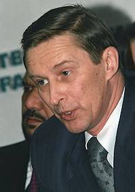 Министр обороны России Сергей Иванов на совместной пресс-конференции с министром обороны Афганистана генералом армии Моххамадом Касим Фахимом на тему "Дальнейшее взаимодействие по восстановлению мирной жизни в Афганистане". Пресс-конференция состоялась в центральном офисе агентства "Интерфакс"