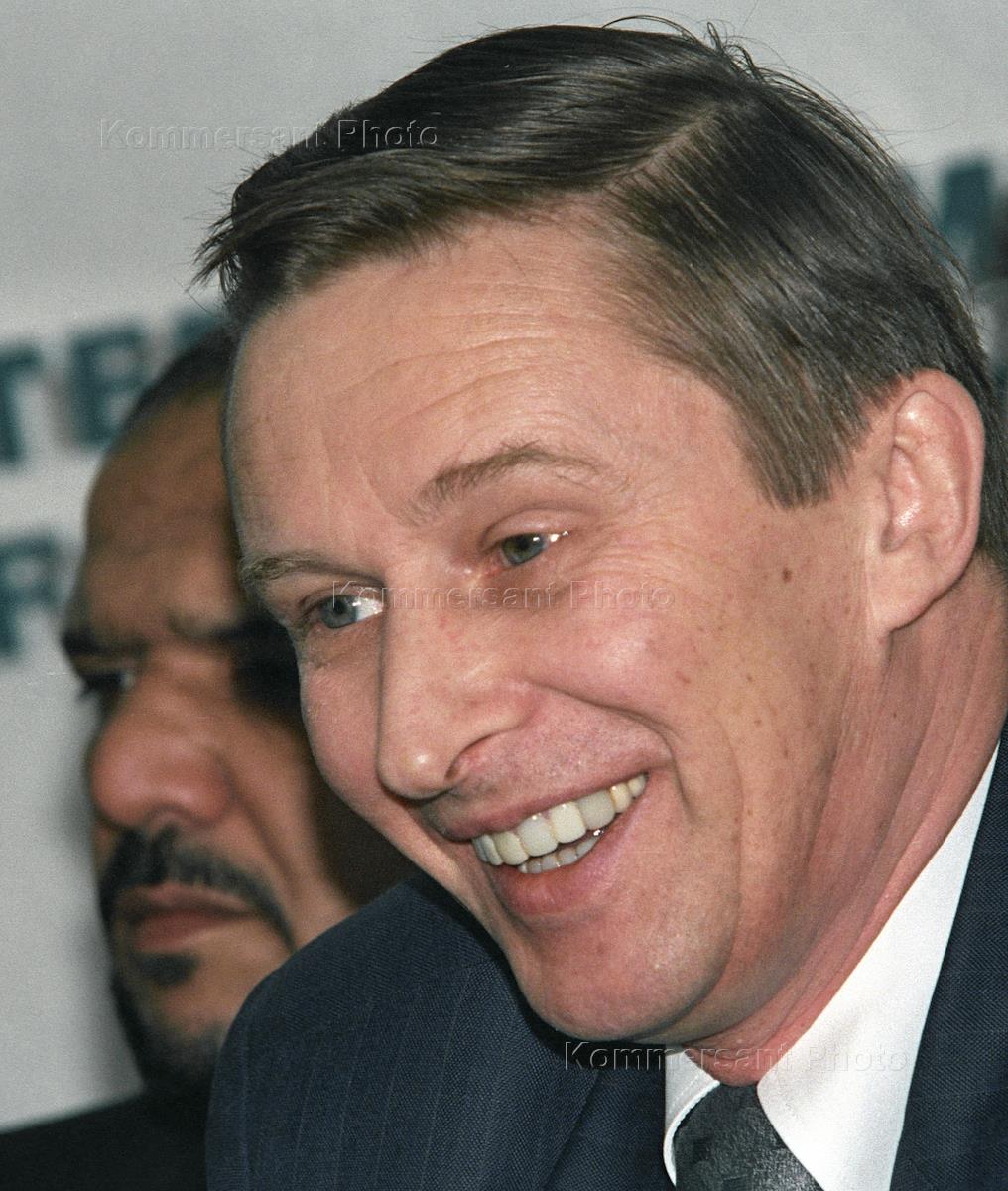 Russian Defence Minister Sergey Ivanov is interviewed at the joint news conference with his counterpart Army General Mohammad Qasim Fahim of Afghanistan. The news conference headlined 'Co-Operation for Peace in Afghanistan' was held in the Interfax news agency headquarters.