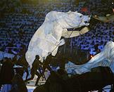 Олимпиада 2002. Торжественная церемония открытия XIX зимних Олимпийских игр на стадионе Rice-Eccles. Выступление участников театрализованного представления.