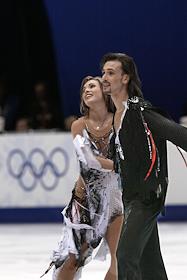 Олимпиада 2002. Серебряные призеры Олимпиады в спортивных танцах на льду российские фигуристы Ирина Лобачева и Илья Авербух.