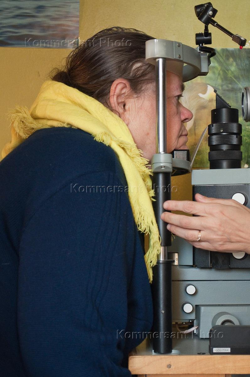 Центральная районная больница в селе Каширское. Пожилая женщина на приеме у врача окулиста.
