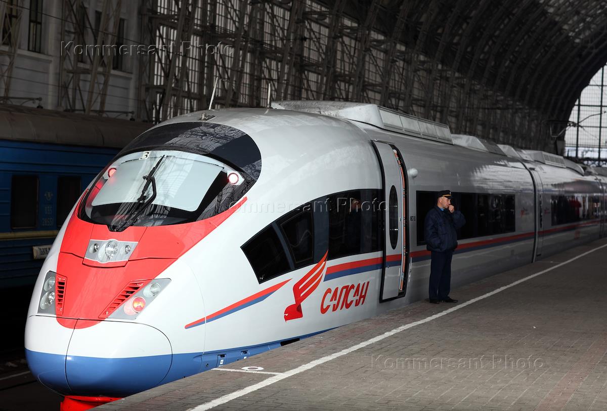 Скоростной поезд-экспресс "Сапсан" на Киевском вокзале.