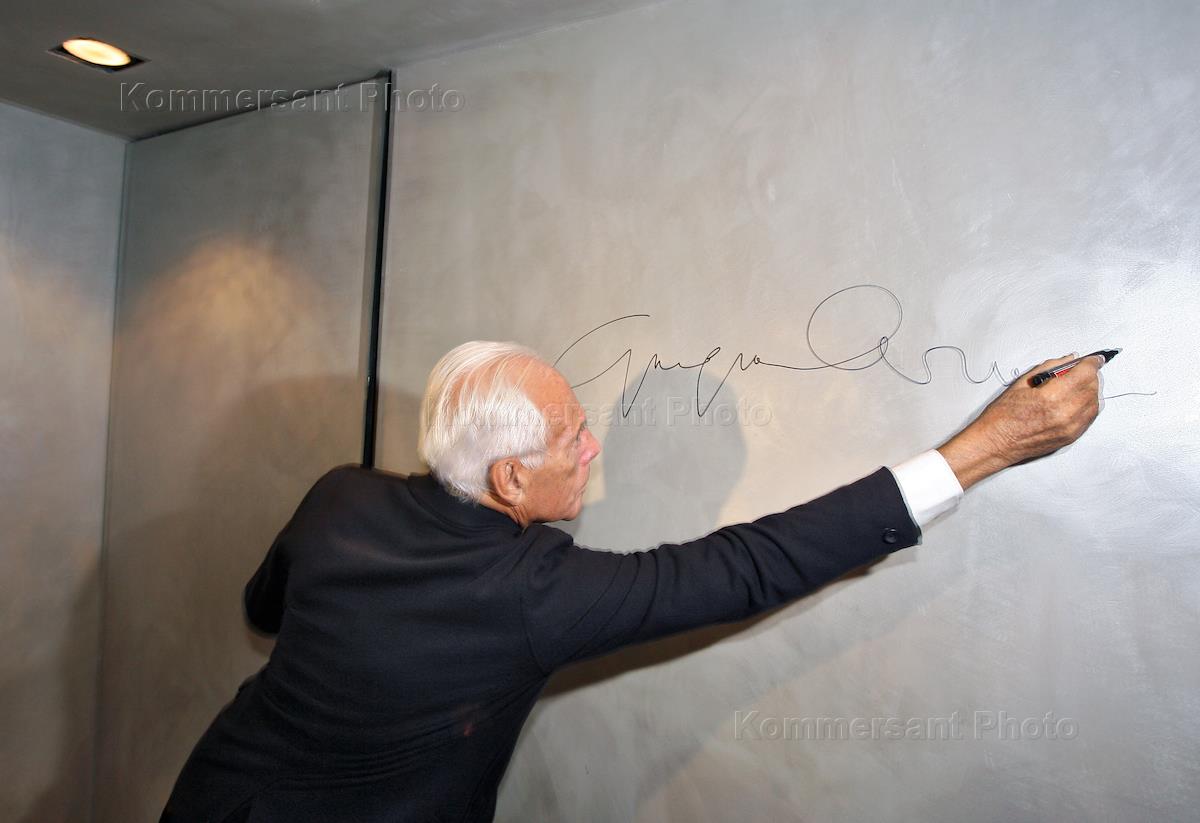 Итальянский модельер Джорджио Армани в бутике Emporio Armani перед началом показа своей новой коллекции Emporio Armani. Показ прошел в Главном универсальном магазине (ГУМ).