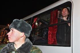 В автобусе задержанные участники акции "Митинг несогласных", организованной российскими оппозиционерами и правозащитниками в защиту свободы собраний. Акция прошла на Триумфальной площади.