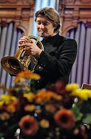 Гала-концерт V Музыкального фестиваля Crescendo. Трубач Сергей Накаряков во время выступления на концерте в Большом зале консерватории (БЗК).