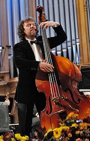 Гала-концерт V Музыкального фестиваля Crescendo. Контрабасист Андрей Иванов во время выступления на концерте в Большом зале консерватории (БЗК).