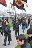 Сотрудники милиции в оцеплении во время акции "Русский марш", организованной Движением против нелегальной иммиграции (ДПНИ). Акция прошла у станции метро "Люблино".