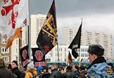 Координатор Центрального Совета (ЦС) Движения против нелегальной иммиграции (ДПНИ) Александр Белов (Поткин) (справа) во время проведения акции "Русский марш". Акция, организованная ДПНИ прошла у станции метро "Люблино".