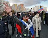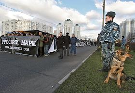 Участник акции "Русский марш", организованной Движением против нелегальной иммиграции (ДПНИ). Акция прошла у станции метро "Люблино".