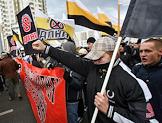 Полковник Владимир Квачков (слева) и координатор Центрального Совета (ЦС) Движения против нелегальной иммиграции (ДПНИ) Александр Белов (Поткин) (справа) во время проведения акции "Русский марш". Акция, организованная ДПНИ прошла у станции метро "Люблино".