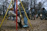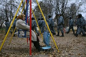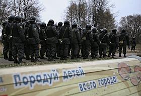 День народного единства. Митинг, организованный движениями "Славянский союз", "Славянская община" и Движением против нелегальной иммиграции (ДПНИ), прошел в парке 50-летия Октября. Сотрудники милиции перед началом митинга.