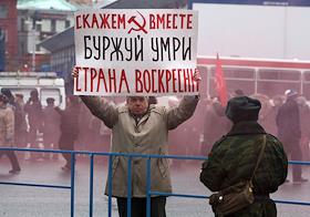 Митинг, посвященный годовщине Октябрьской революции, под лозунгами "Красную площадь-народу!", "Восстановить 7 ноября, как государственный праздник!".