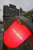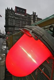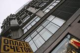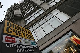 Виды Москвы. Здание головного офиса Банка Москвы на Кузнецком мосту и рекламная растяжка "На страже безопасности и порядка".