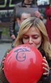 Акция в поддержку бывшего главы НК "ЮКОС" Михаила Ходорковского прошла на Пушкинской площади. Девушка надувает воздушный шар с портретом Ходорковского.