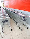 Жанровая фотография. Продуктовые тележки с логотипом гипермаркета "РЕАЛ".