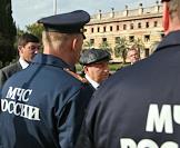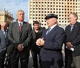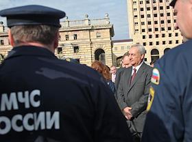 Мэр Москвы Юрий Лужков (в центре) на церемонии официальной передачи гуманитарного груза. Церемония прошла на Площади Свободы.