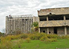 Мэр Москвы Юрий Лужков (справа) во время визита в Абхазию.