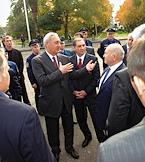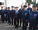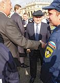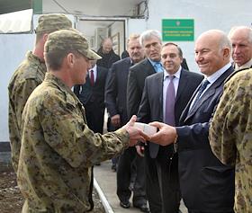 Мэр Москвы Юрий Лужков (в центре) во время посещения расположения российских пограничников.