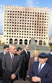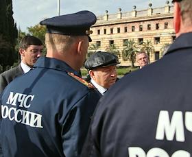 Мэр Москвы Юрий Лужков (пятый слева) и президент Абхазии Сергей Багапш (четвертый справа) на церемонии официальной передачи гуманитарного груза. Церемония прошла на Площади Свободы.