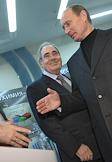 Президент республики Татарстан Минтимер Шаймиев (слева) и председатель правительства России Владимир Путин (справа) во время посещения ОАО "Нижнекамскнефтехим".