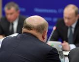Председатель правительства России Владимир Путин (слева) и министр энергетики России Сергей Шматко (в центре) на совещании о мерах по развитию нефтехимии и газохимии в России. Совещание прошло на территории ОАО "Нижнекамскнефтехим".