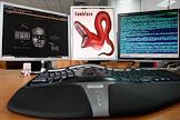 Интерьер главного офиса "Лаборатории Касперского". Заставка на экране монитора.